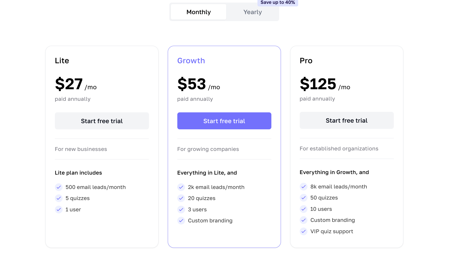 but only inside paid plans (Growth $53/mo or Pro $125/mo).